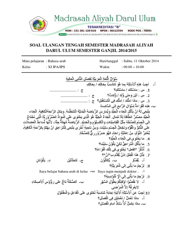 Soal bahasa arab ma kelas x semester 1. Check spelling or type a new query. We did not find results for: Maybe you would like to learn more about one of these?
