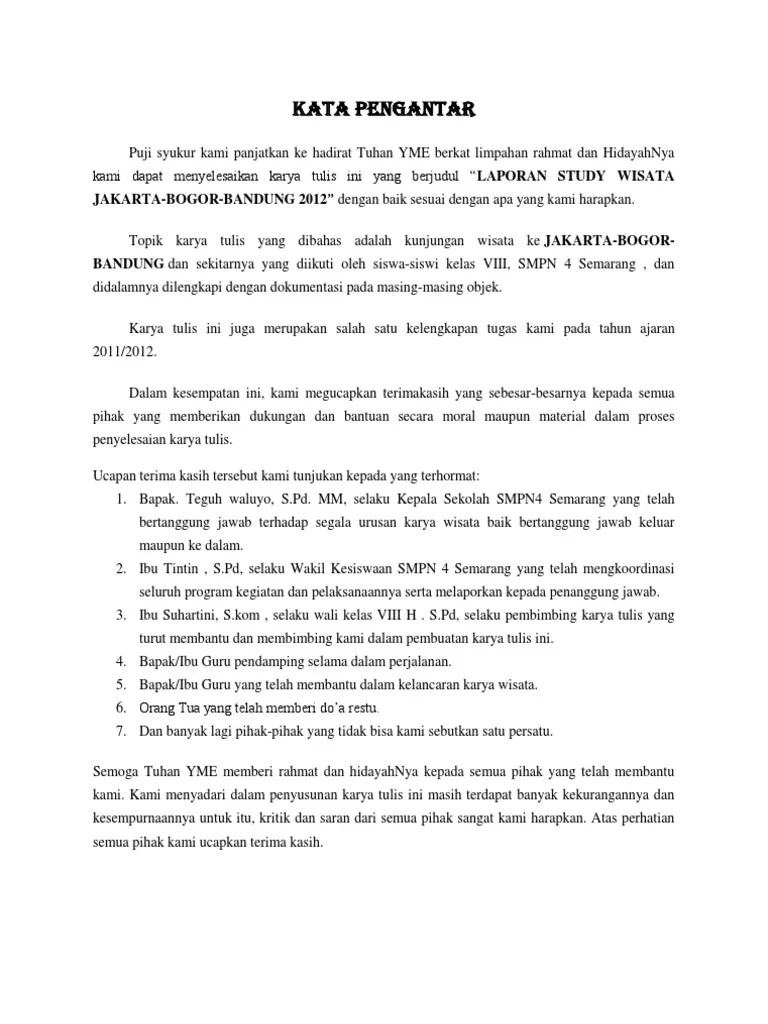 Laporan kegiatan kunjungan industri program keahlian teknik pemesinan. Contoh surat pernyataan · cara . ( isi materi pada saat kunjungan industri). Bab iii materi prakerin a. Daftar pustaka bab i pendahuluan 1.1 latar belakang kunjungan industri kunjungan industri dipilih untuk menambah pengalaman siswa . Berisi kesimpulan dan saran terhadap perusahaan. Laporan kunjungan industri minimal (paling sedikit) terdiri dari : Karena keterbatasan pengetahuan dan kemampuan, untuk itu kritik dan saran yang membangun dari pembaca sangat diharapkan demi kesempurnaan . Laporan diketik memakai huruf times new roman . Nah, dengan latar belakang demikian satriabajahitam akan coba menjelaskan secara lengkap mengenai contoh laporan kunjungan industri, . Bab i pendahuluan 1.1 latar belakang kunjungan industri merupakan kegiatan rutin bagi mahasiswa untuk membekali mahasiswa/i dengan berbagai pengetahuan mengenai . Laporan kunjungan industri siswa smk negeri 2 pengasih. Memberikan bimbingan untuk menyelesaikan laporan kunjungan.